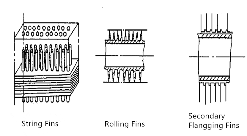 2.2.4. Mechanically connected fin tubes: There are usually three types: winding type, inlaid type, sleeve type or string type. Finned tubes are easy to manufacture. A metal strip is fixed to one end of the tube by mechanical or welding. The metal strip is tightly wrapped around the outer wall of the tube by the rotational torque of the tube. The other end is fixed to form a finned tube. The material of the strip can be copper strip, steel strip or aluminum strip.